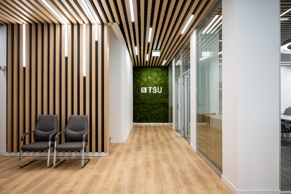 Technický skúšobný ústav | Piešťany Rekonštrukcia vstupnej haly TSU. Projekt revitalizácie vstupnej haly a vytvorenie nových rokovacích miestností pre TSU. Hlavný projektant: Ing. Arch. Csaba Ambrus Návrh interiéru – štúdio MAUKŠ